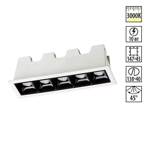 | Доп. Артикул | 357621 SPOT NT18 221 белый/черный Встраиваемый светильник IP20 LED 3000K 10W 160-265V ANTEY |