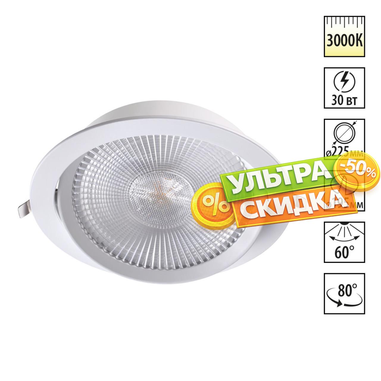 | Доп. Артикул | 358001 SPOT NT19 231 белый Встраиваемый поворотный светильник IP20 LED 3000К 30W 85-265V STERN |
