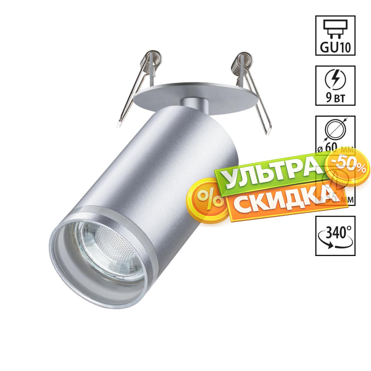 | Доп. Артикул | 370883 SPOT NT22 239 серебро Cветильник встраиваемый IP20 GU10 9W 220V ULAR |