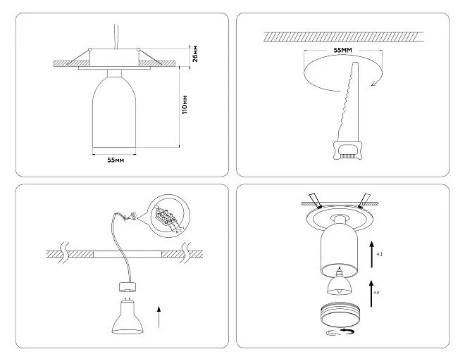 | Комплектация и упаковка/Комплектация | встраиваемый точечный светильник (лампа не в комплекте) |