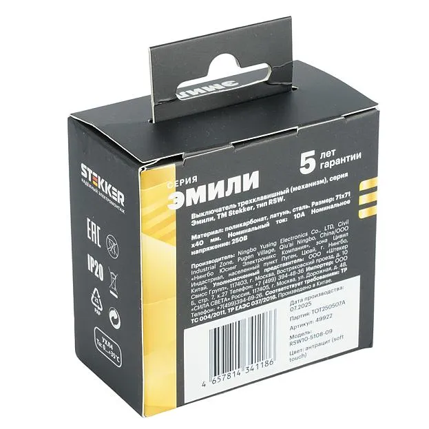 Купить Выключатель 3-клавишный (механизм), STEKKER, 250В, 10А, серия Эмили, RSW10-5108-09, антрацит, soft touch в интернет-магазине ЛюстраНаДом со скидкой и кешбеком. Работаем с НДС, доставляем на дом и в ПВЗ. Продажа Stekker 49922 RSW10-5108-09 осуществляется с доставкой по Москве и регионам России бесплатно от 5000 р.