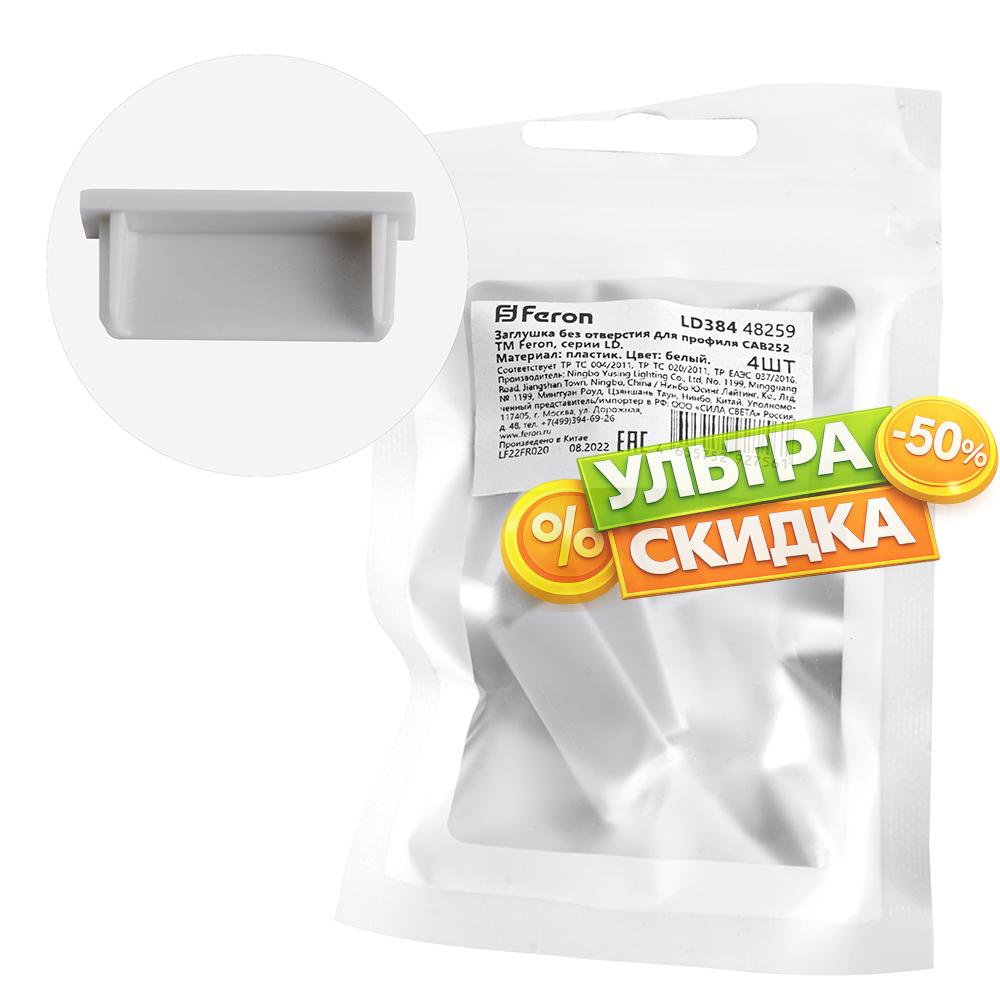 Купить Заглушка без отверстия для профиля CAB252 Feron 48259 LD384 (4шт) в интернет-магазине ЛюстраНаДом со скидкой и кешбеком. Работаем с НДС, доставляем на дом и в ПВЗ. Продажа Feron 48259 LD384 осуществляется с доставкой по Москве и регионам России бесплатно от 5000 р.